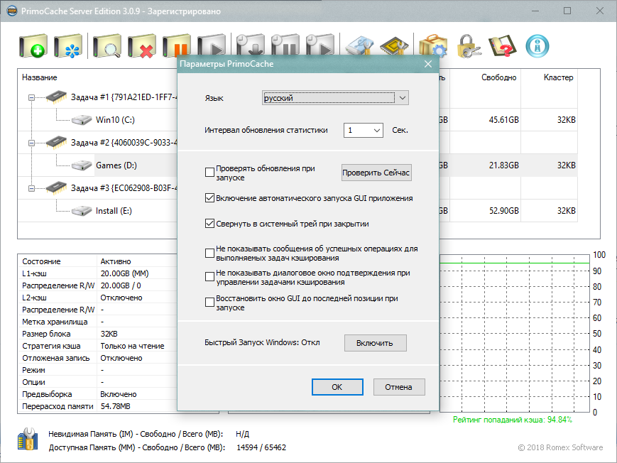 PrimoCache позволяет использовать несколько стратегий кэширования и гибкие конфигурации. Он реализован на уровне ядра Windows и прозрачен для других приложений. Поэтому для этого решения кэширования не требуется никаких изменений приложения или системы. С PrimoCache вы можете легко настроить кэши для локальных дисков и ускорить работу своих компьютеров.